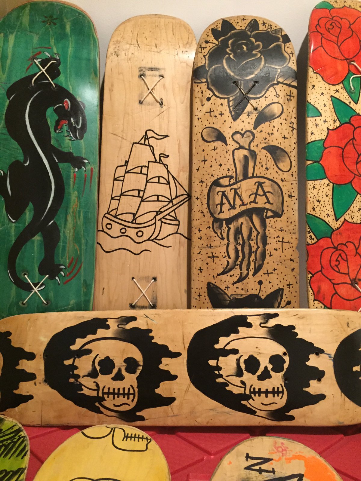 These are all ridden decks sanded and painted by Joey No. they are all hanging on the wall by a system exactly like a regular frame. state witch board you are interested in (reaper board is already sold) Contact for shipping info or can be picked up or dropped off if you are in the red bank New Jersey area..